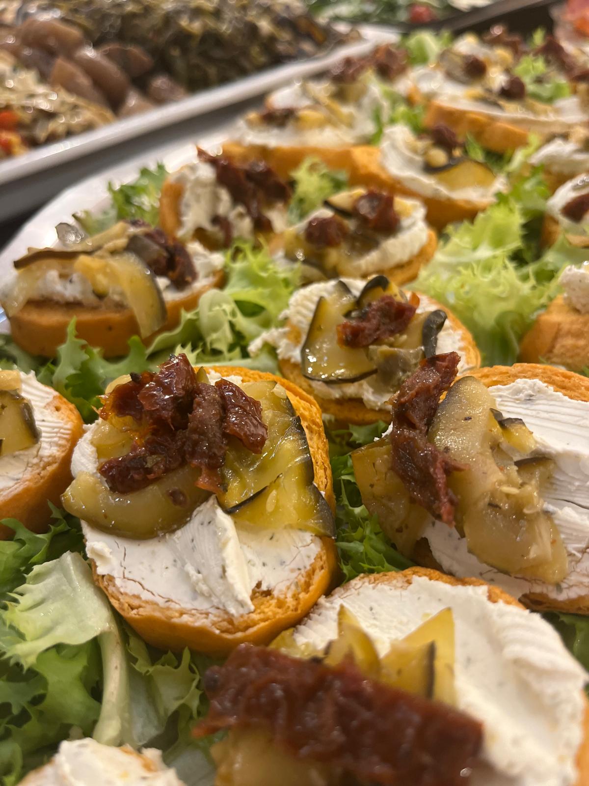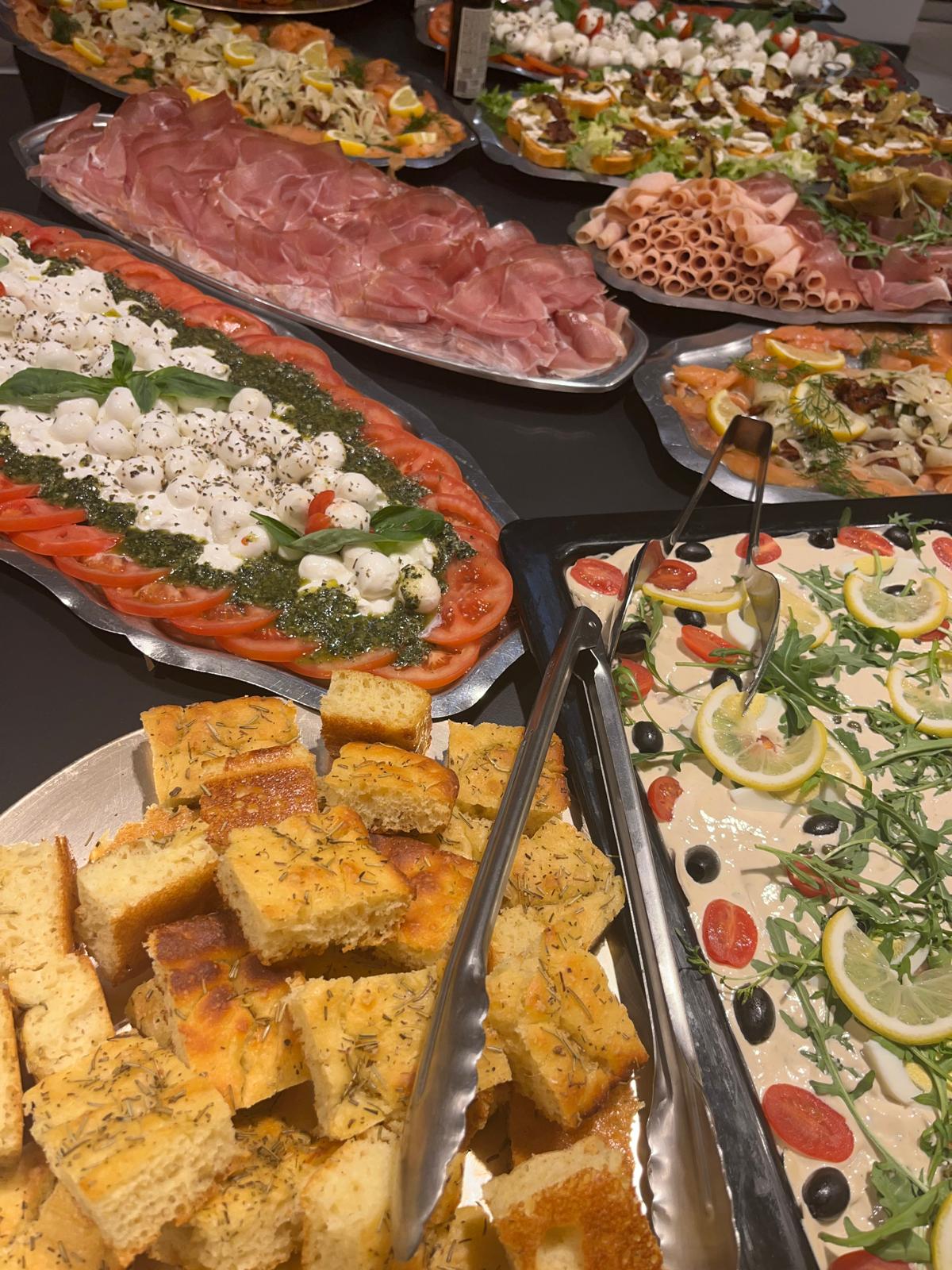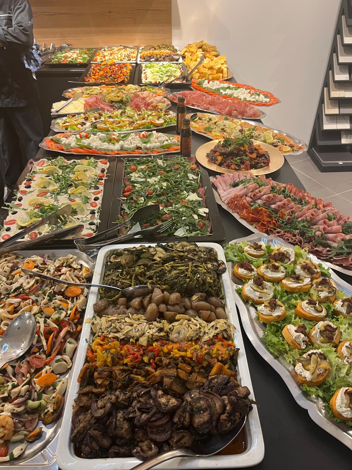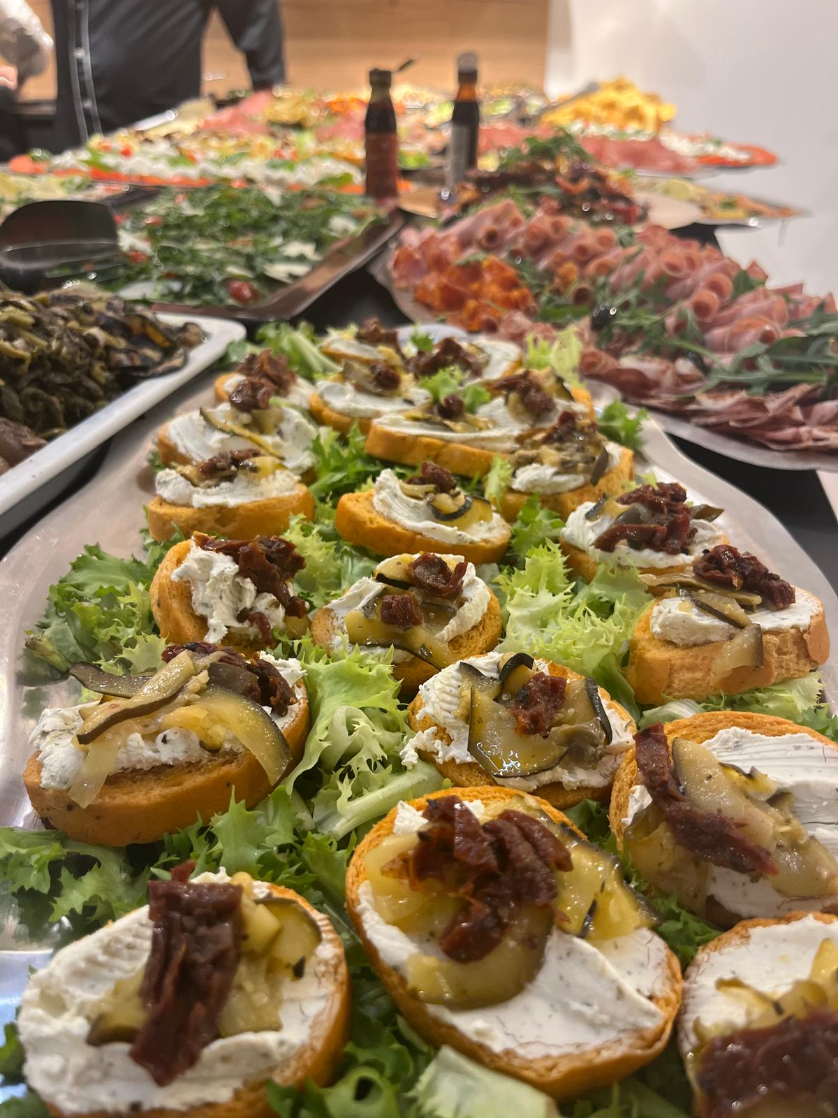 Buffets chauds et froids modulables : antipasti, pâtes fraîches, risottos, viandes mijotées, desserts traditionnels (tiramisu, panna cotta). Adaptés à tous les budgets (30€ à 60€/pers).